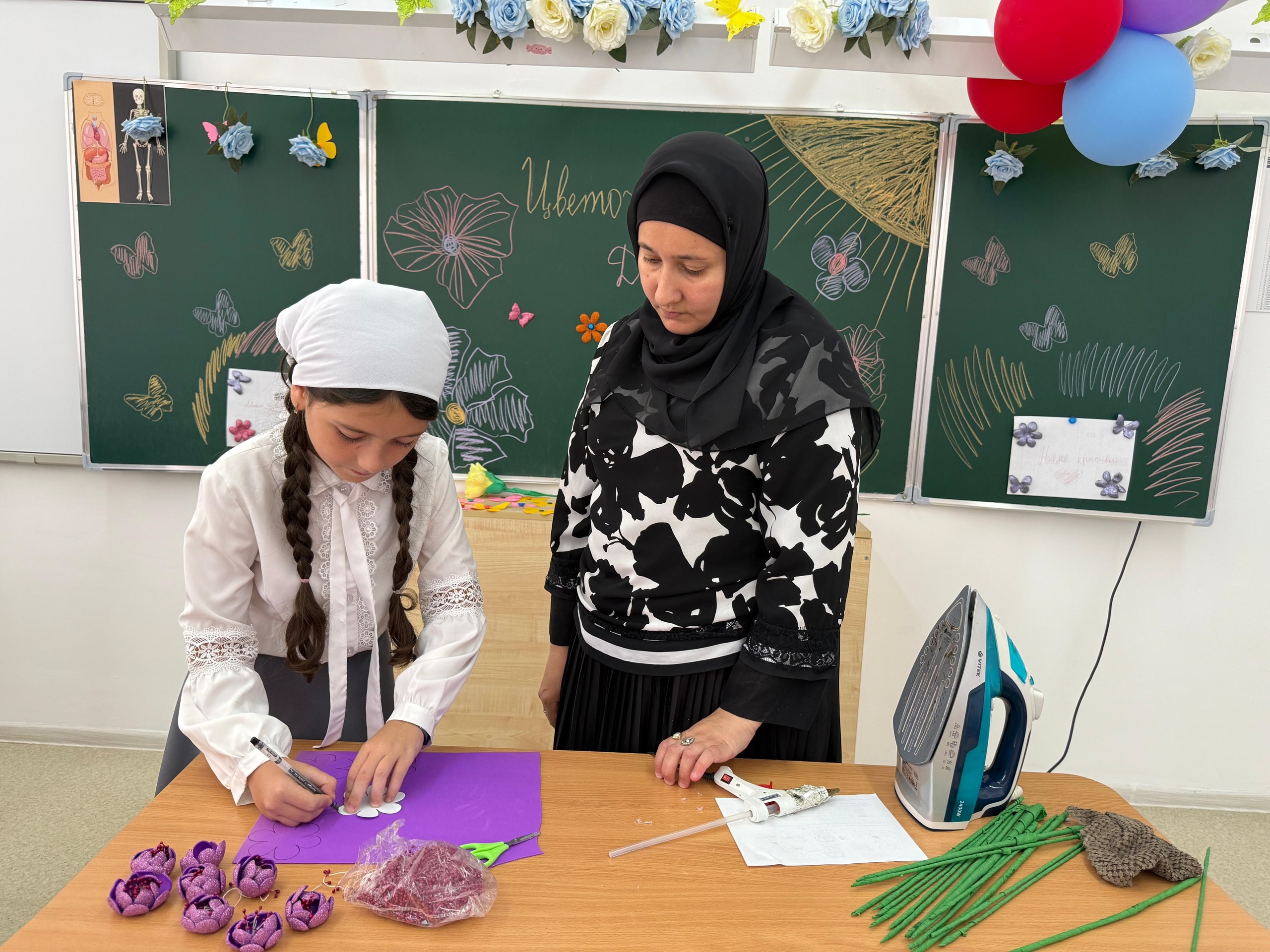 В МБОУ "СОШ №21" города Грозного успешно продолжает свою работу летняя творческая площадка "Цветочный дизайн".