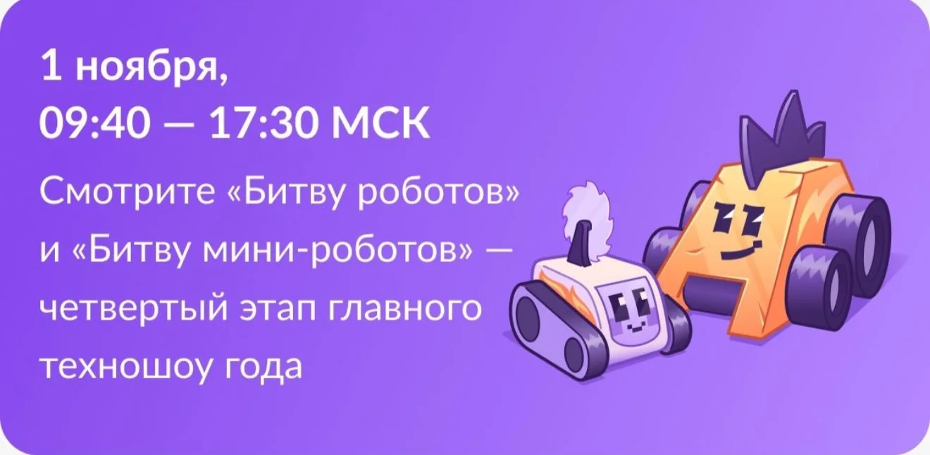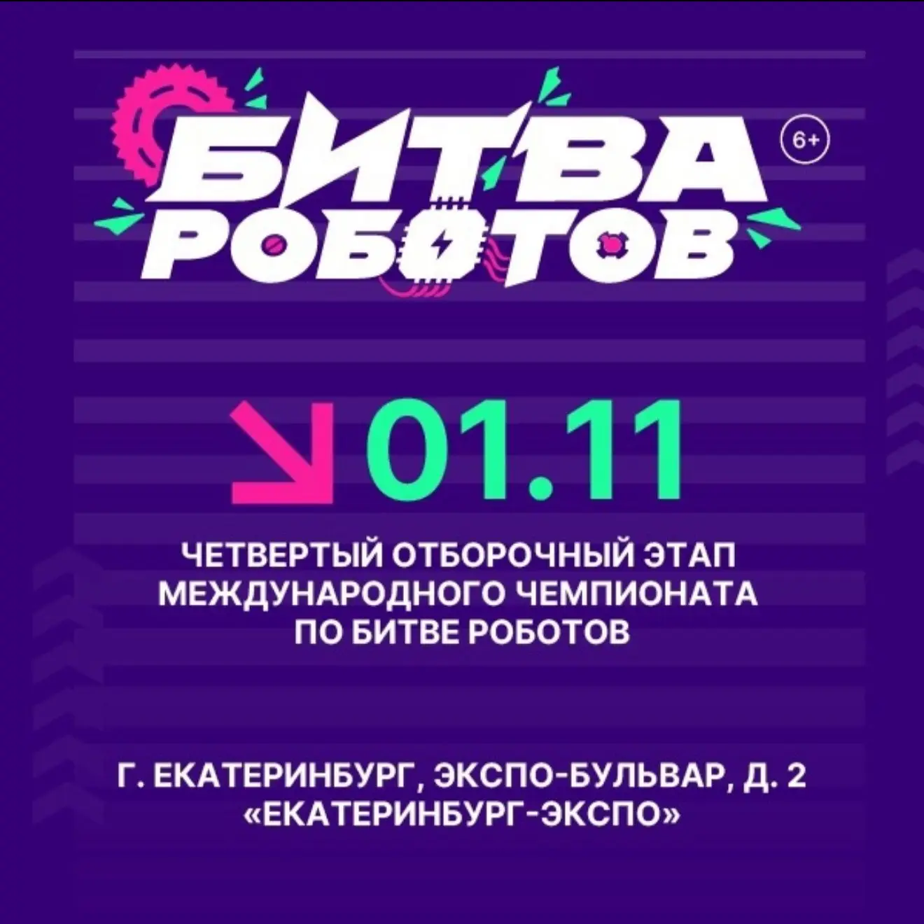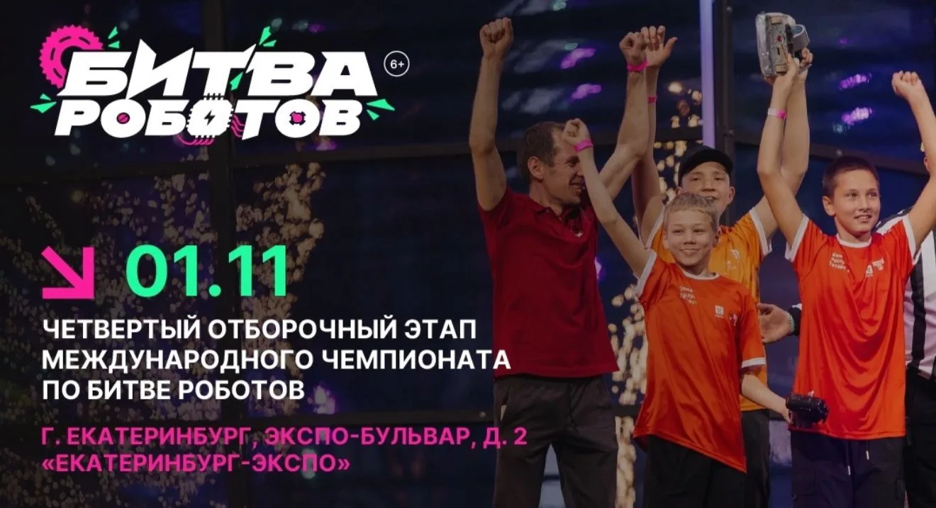 Готовы к адреналину и звону металла? 1 ноября в Екатеринбурге пройдет четвертый отборочный этап международного чемпионата по Битве Роботов! Это не просто соревнования, это настоящее шоу, где инженерная мысль и дистанционное управление встречаются в беспощадной схватке на арене. Зрелищные баттлы, искры из-под ударов и триумф победителей – все это ждет вас! Ждем всех любителей технологий, робототехники и невероятных зрелищ! 🗓 Дата: 1 ноября 📍 Место: Екатеринбург-Экспо (Экспо-бульвар, д. 2)Готовы к адреналину и звону металла? 🚀 1 ноября в Екатеринбурге пройдет четвертый отборочный этап международного чемпионата по Битве Роботов!
